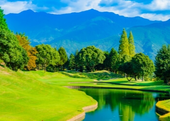 赤石山系を背景に写真映えするホールや、クロスバンカーが巧みに配置されピンポジション次第で攻略ルートが変化するホールが続き、大きなグリーンはパッティング力が試されるコースです。